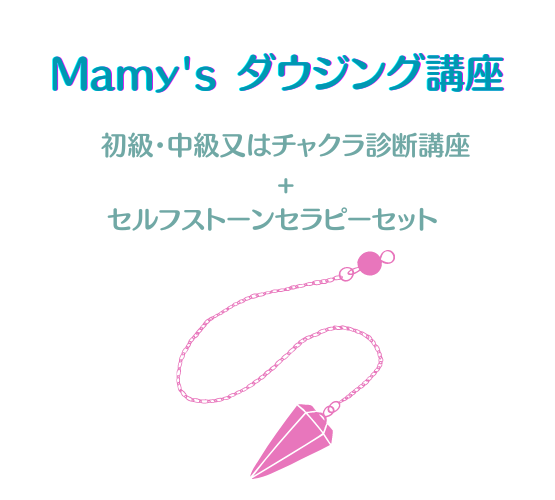 ペンデュラム講座(ペンデュラム付)初級+(中級又はチャクラ診断講座)+セルフストーンセラピーセット(チャクラストーン付+チャクラ診断5回付) のセットです。