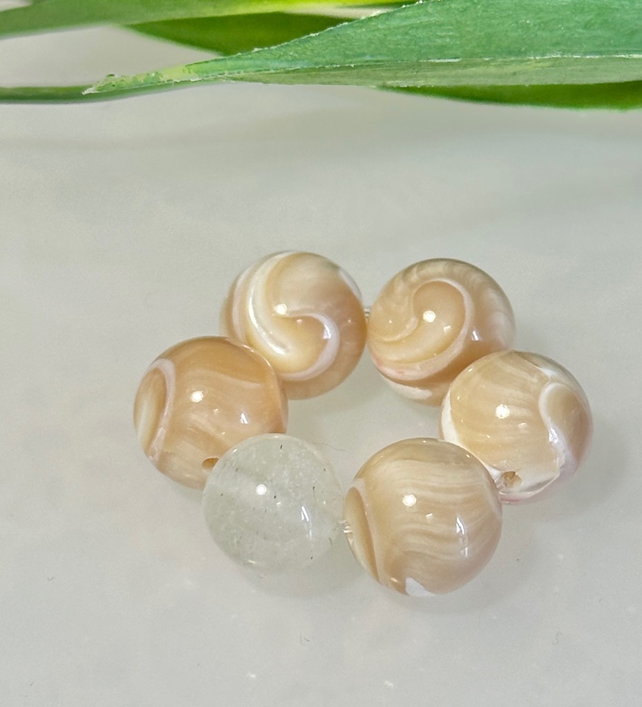 リビアングラス 9㎜ マザーオブパール 10㎜