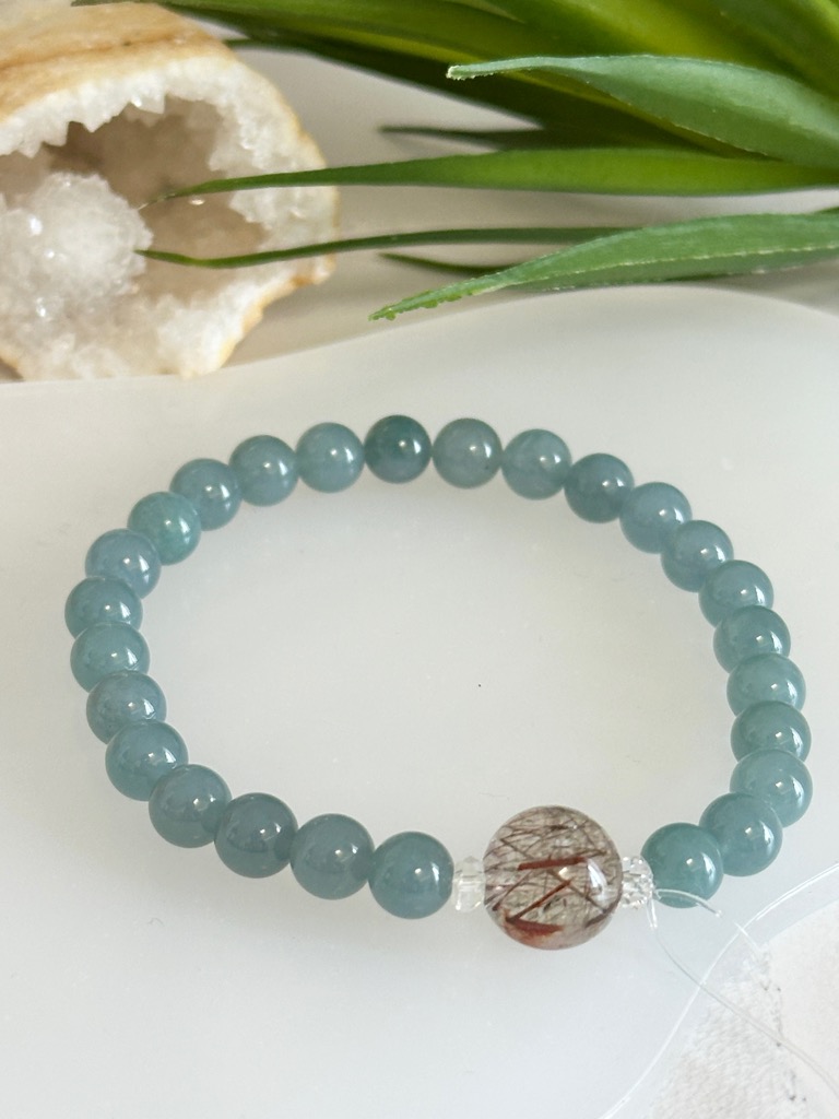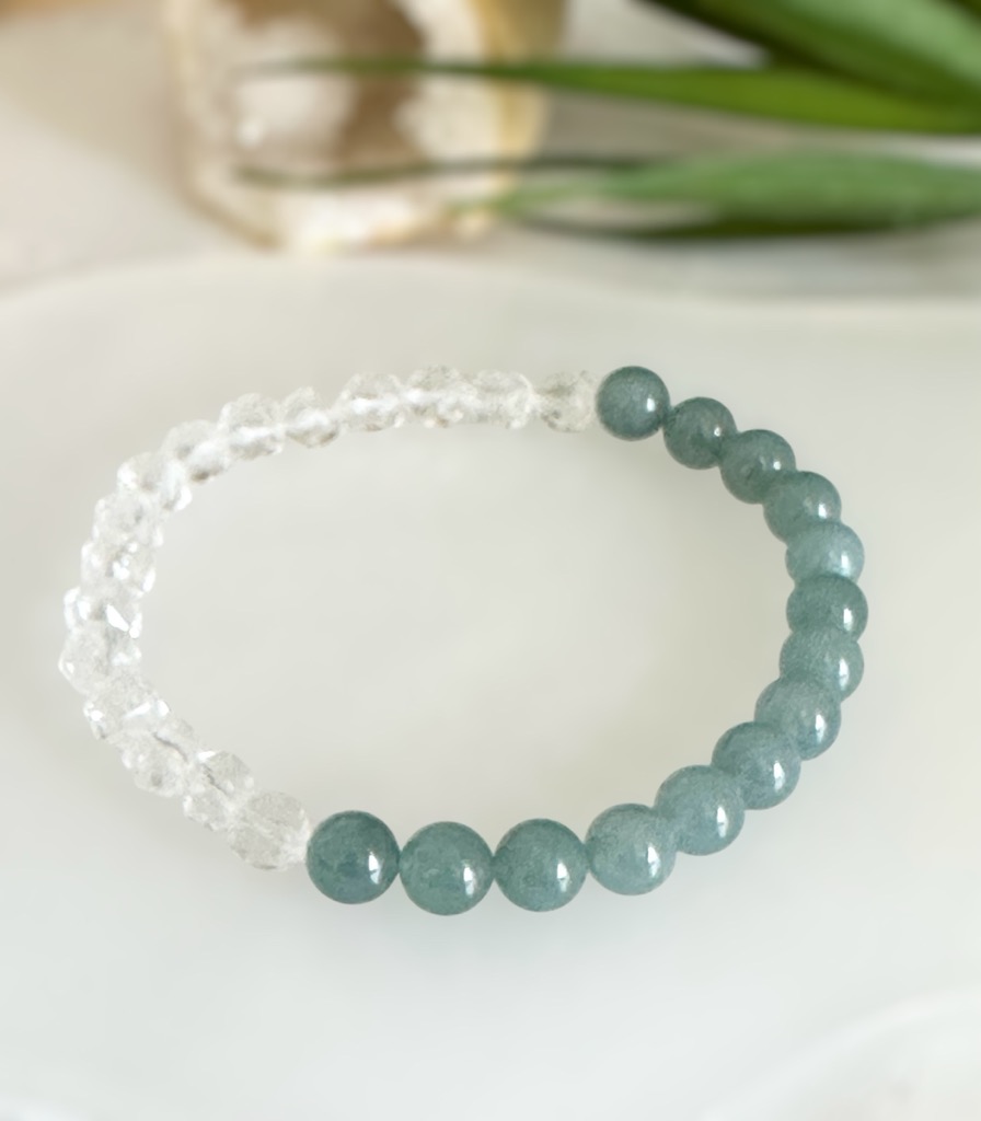 ①Degasuブレス ブルーアベンチュリン×モロッコ産水晶 6mm玉